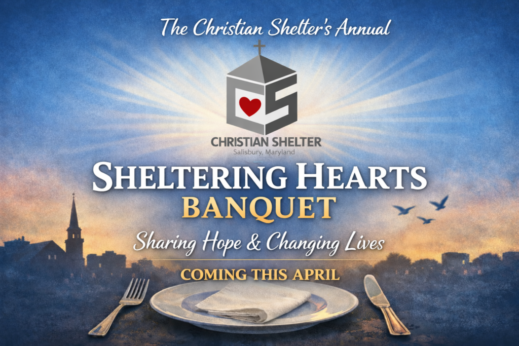 You’re Invited: Sheltering Hearts Fundraising Dinner The Christian Shelter is honored to invite you and your organization to Sheltering Hearts, our annual fundraising dinner dedicated to providing housing, hope, and compassion to individuals and families experiencing homelessness in our community. Event Details đź“… Date: Saturday, April 18, 2026📍 Location: Wicomico Youth & Civic Center – […]